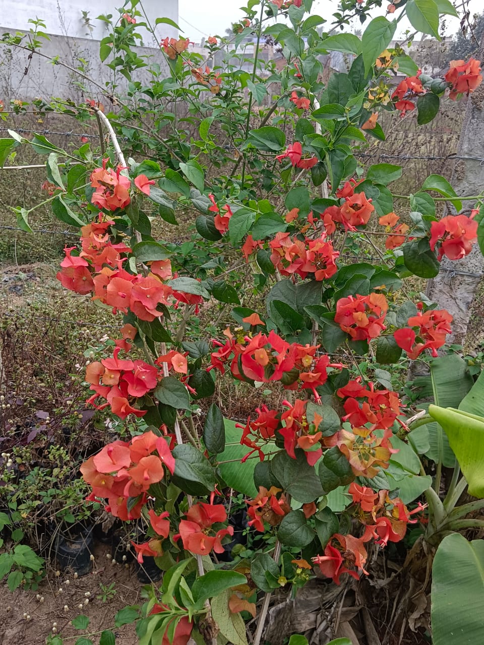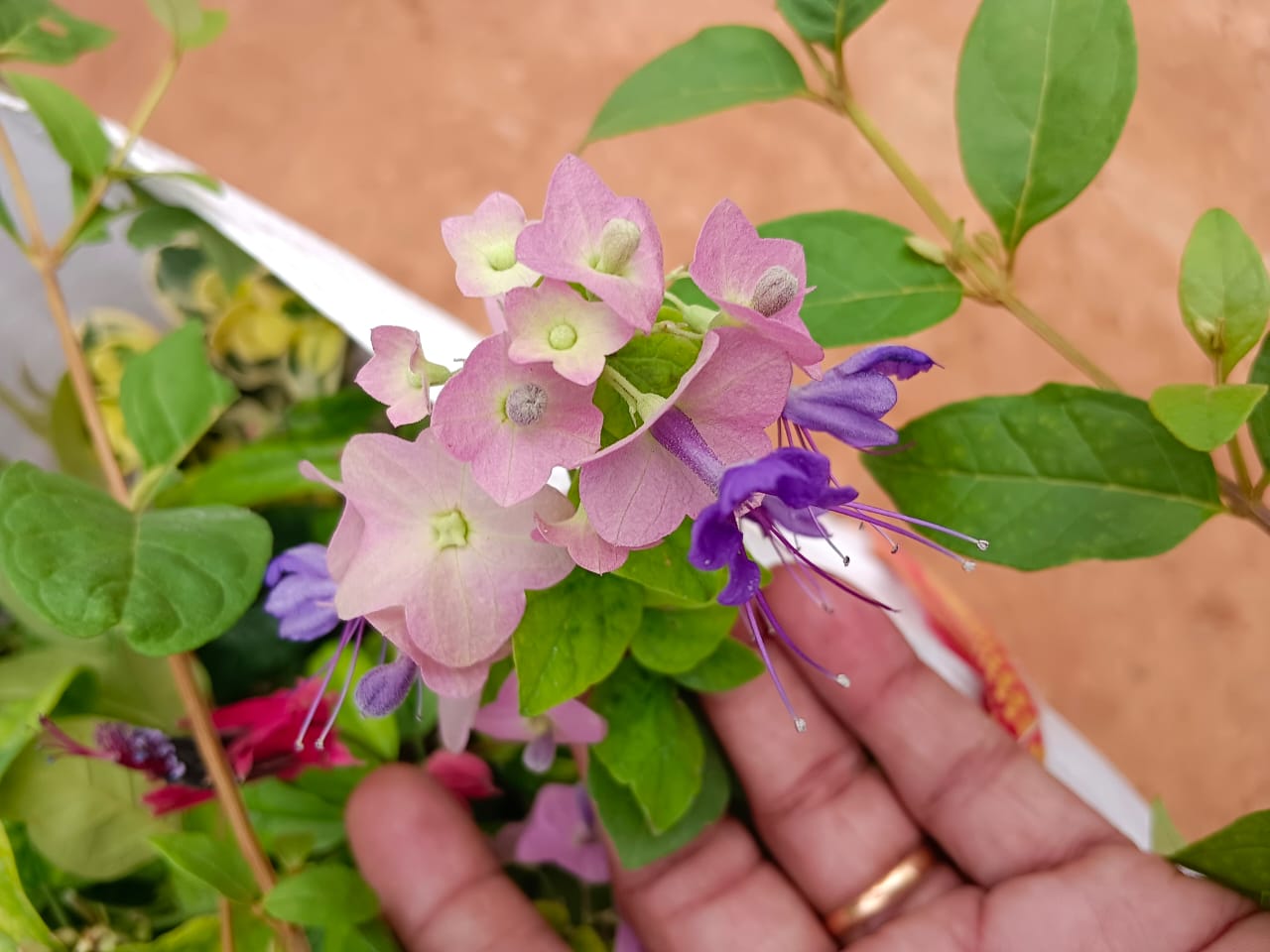 Chinese hat plant (Holmskioldia sanguinea), known for its unique, bright orange, cup-and-saucer-shaped flowers